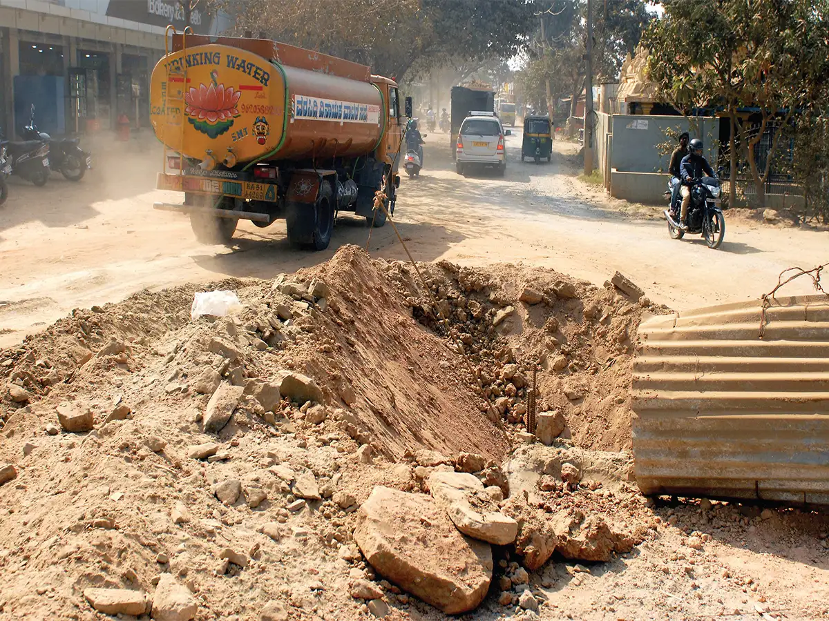 Locals report that the BWSSB used loose soil and a minimal layer of tar to cover the road after the sewage pipes were installed, a practice that has led to rapid degradation. In contrast, the required practice would have involved laying aggregates and a thicker coat of tar to ensure the road could withstand weather conditions.