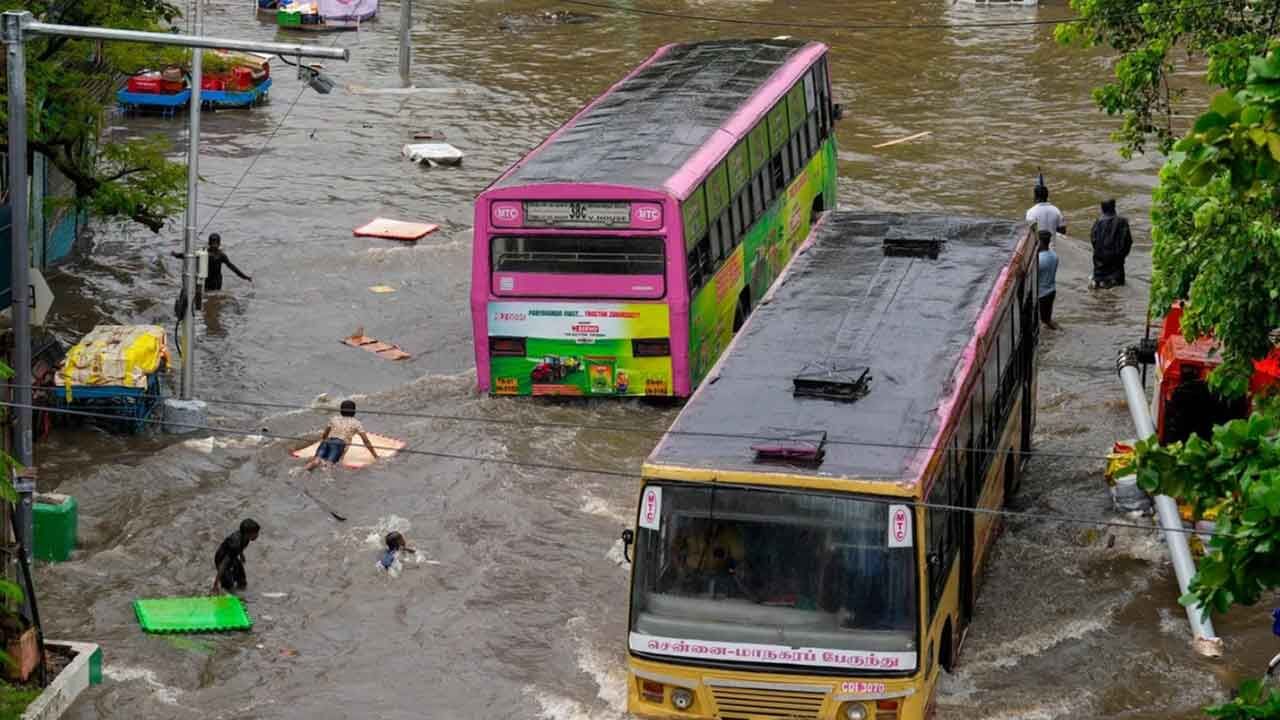 Chennai rains flood low lying areas disrupt traffic across major roads