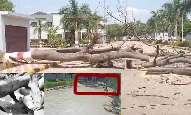 In a tragic incident on Tuesday morning, a 50-year-old man lost his life, and his wife sustained serious head injuries when a decades-old tree fell on them inside the Cantonment General Hospital in Bolarum, Secunderabad.