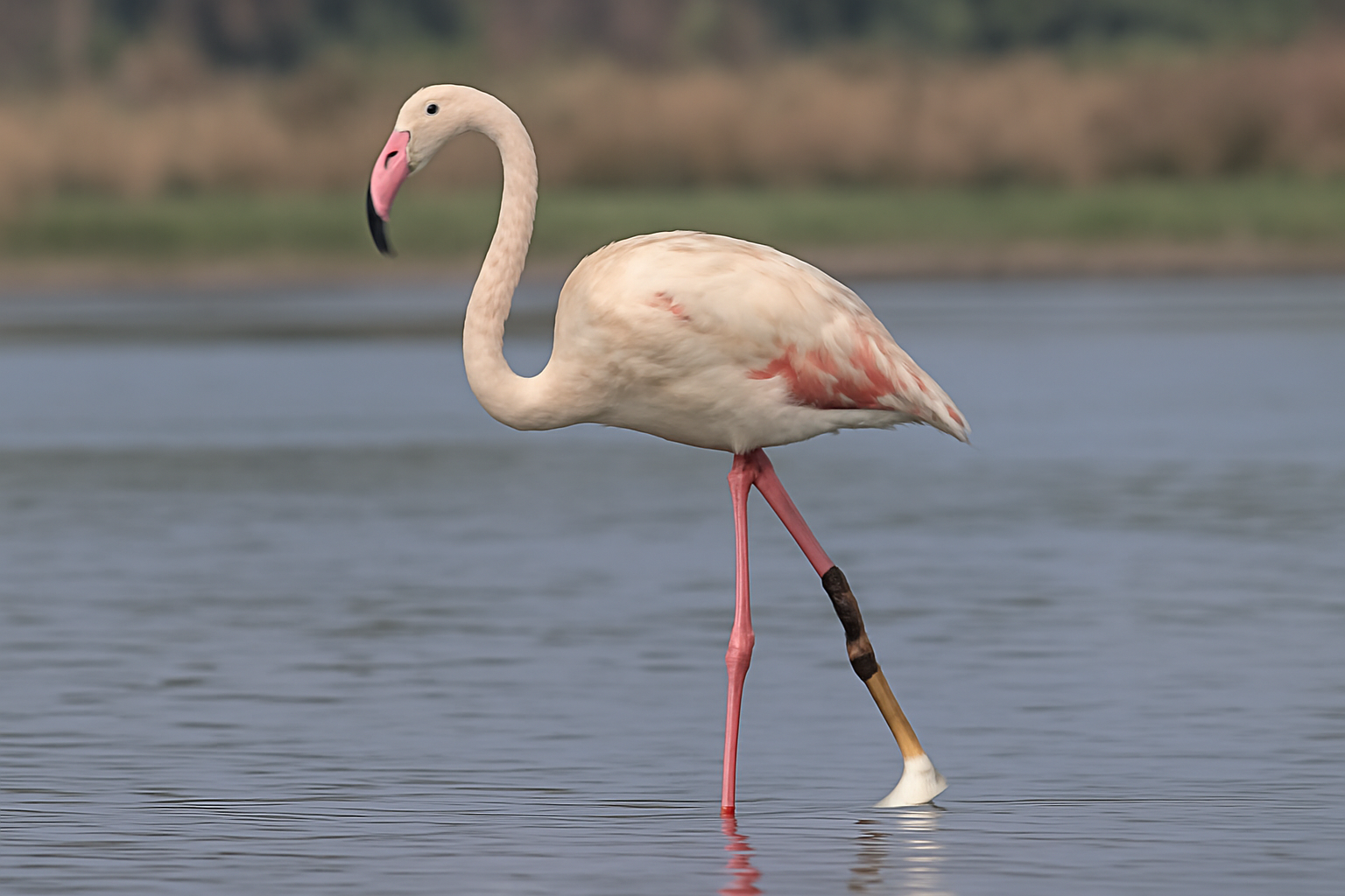 In a remarkable story of resilience, a Greater Flamingo injured in Navi Mumbai’s Nerul wetland has been given a new lease on life, thanks to a successful prosthetic leg installation. The bird, which had its left leg amputated after suffering an injury—likely caused by a fishing net or nylon fishing line—can now walk again, though the dream of seeing it soar in the skies remains a work in progress.