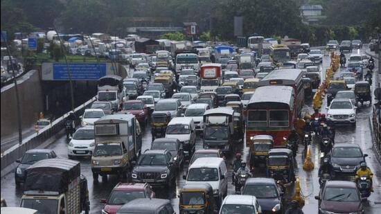 A severe traffic jam gripped the Bhiwandi-Wada road in Maharashtra’s Thane district on Thursday after overnight rainfall damaged large portions of the road surface.