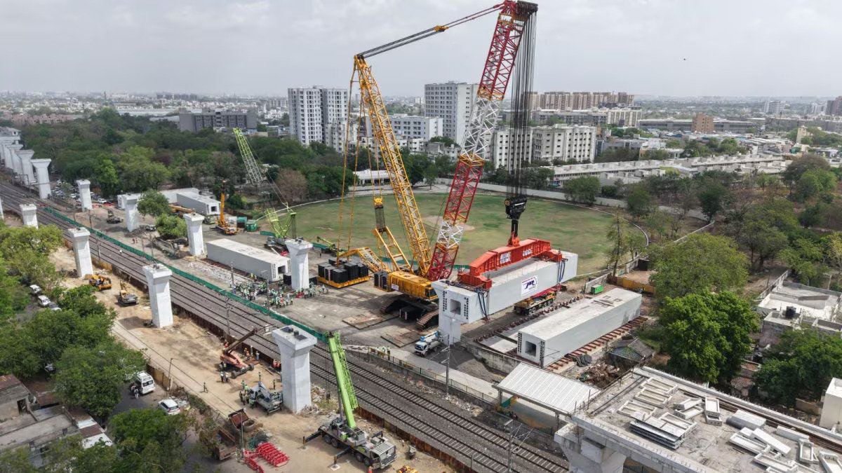 The recent operation involved positioning a massive precast structural beam over an active railway section in Gujarat, a task that typically requires extended traffic blocks and prolonged safety windows. However, project engineers managed to complete the lifting and placement process within a few hours, significantly compressing earlier timelines that often stretched across multiple phases of restricted rail operations. This achievement reflects a shift towards precision-led construction practices, where planning, equipment coordination, and risk mitigation are tightly synchronised. The girder, weighing well over a thousand metric tonnes, was installed using high-capacity cranes and specialised lifting systems designed to handle extreme loads while maintaining structural integrity and operational safety.