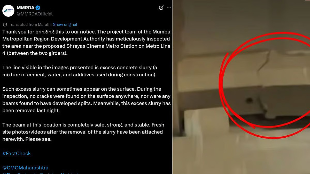 Heightened public scrutiny of Mumbai’s metro construction has led to a detailed technical inspection of an elevated beam along Metro Line 4, with authorities confirming that the structure is safe and free of structural defects. The assessment follows the circulation of construction visuals near the proposed Shreyas Cinema station, which raised concerns among residents already sensitised by recent infrastructure incidents elsewhere on the corridor.