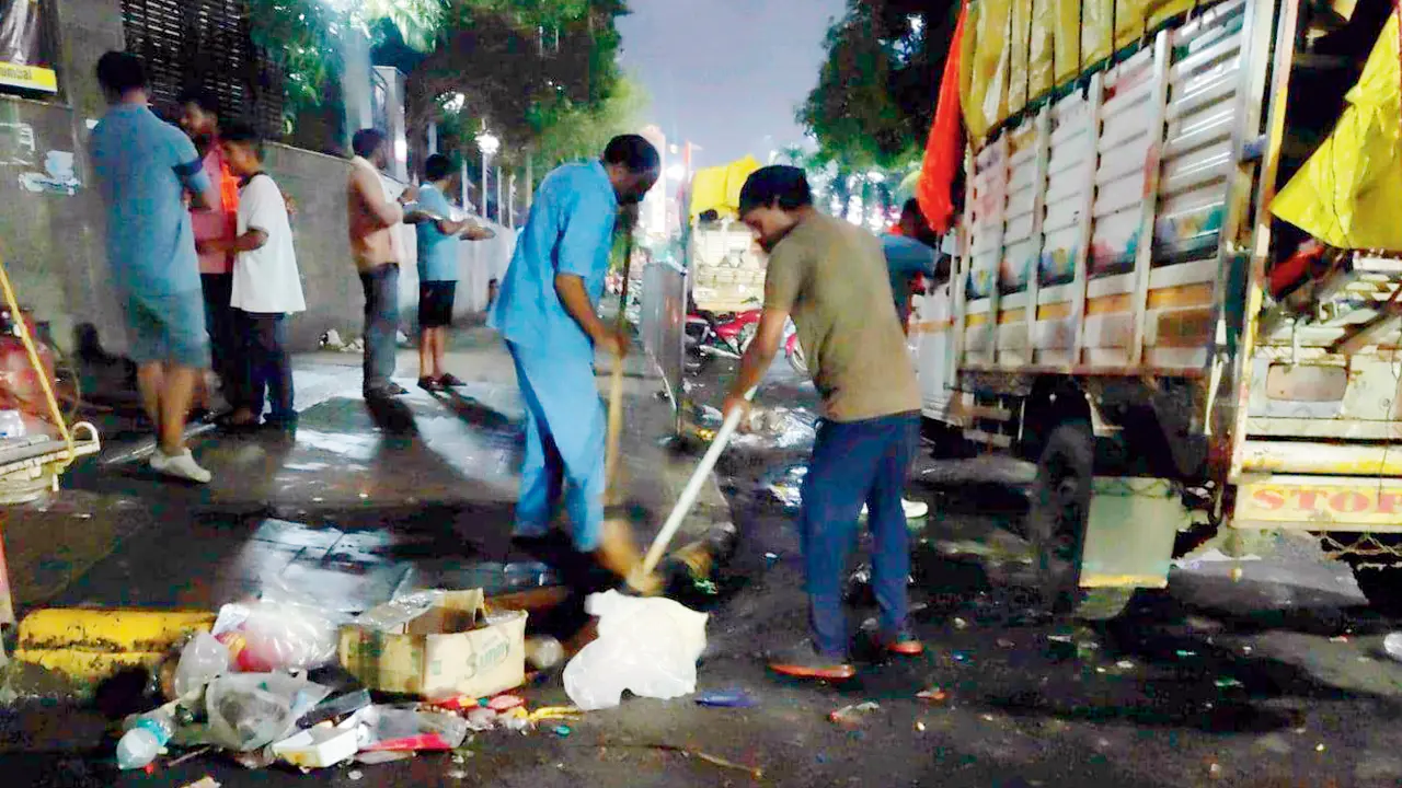 Navi Mumbai Municipal Corporation (NMMC) restored cleanliness across Vashi within hours of the massive Maratha protest that concluded late on Tuesday. The civic body deployed its sanitation force through the night, ensuring that the city was spotless by dawn. According to civic officials, over 21 tonnes of waste were lifted during the operation. More than 100 sanitation workers, supported by mechanised sweeping machines, sewer jetting equipment and waste transport vehicles, worked relentlessly until 4 am