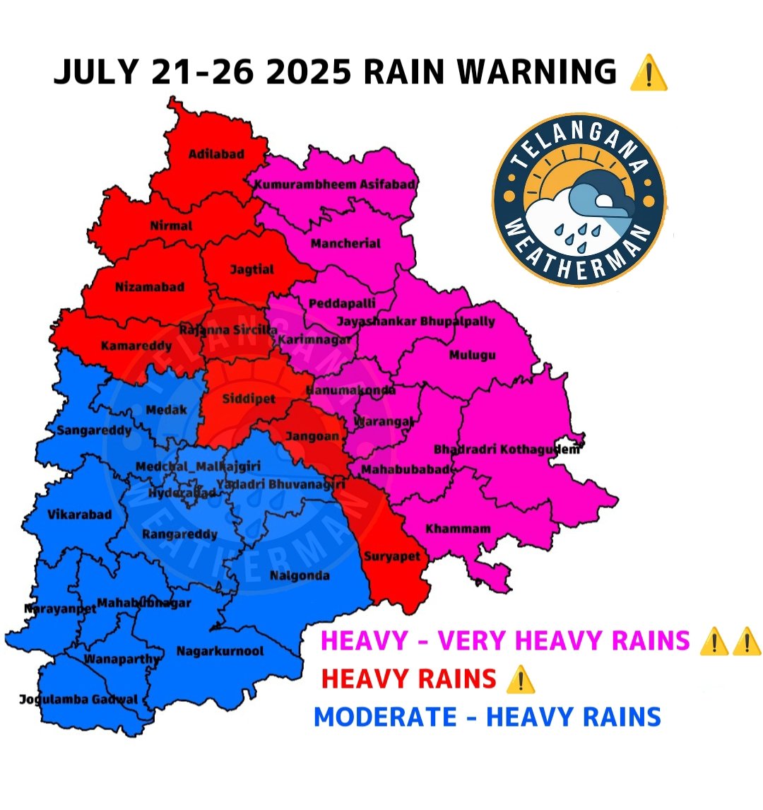 Parts of Telangana are set to experience light to moderate rainfall and isolated thunderstorms over the next two to three days, with eastern districts expected to receive the most precipitation. While urban centres such as Hyderabad are likely to see mostly cloudy skies and occasional drizzles, rural belts could witness more active weather conditions accompanied by lightning and gusty winds.